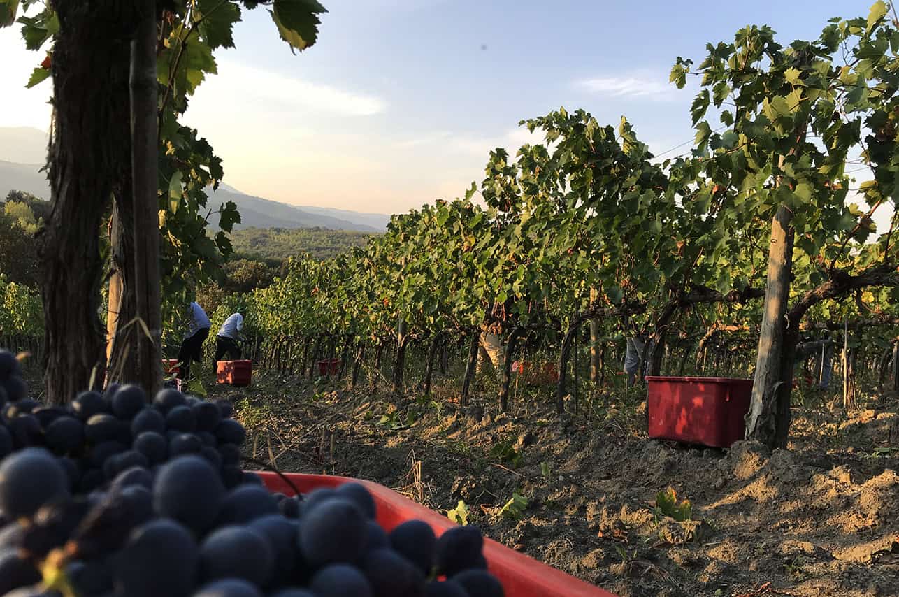 The experience revolves around the harvest itself: a full morning working in the vineyard alongside the winemaker, picking Sangiovese grapes, bringing them to the cellar, pressing them and learning about the winemaking process from the inside.